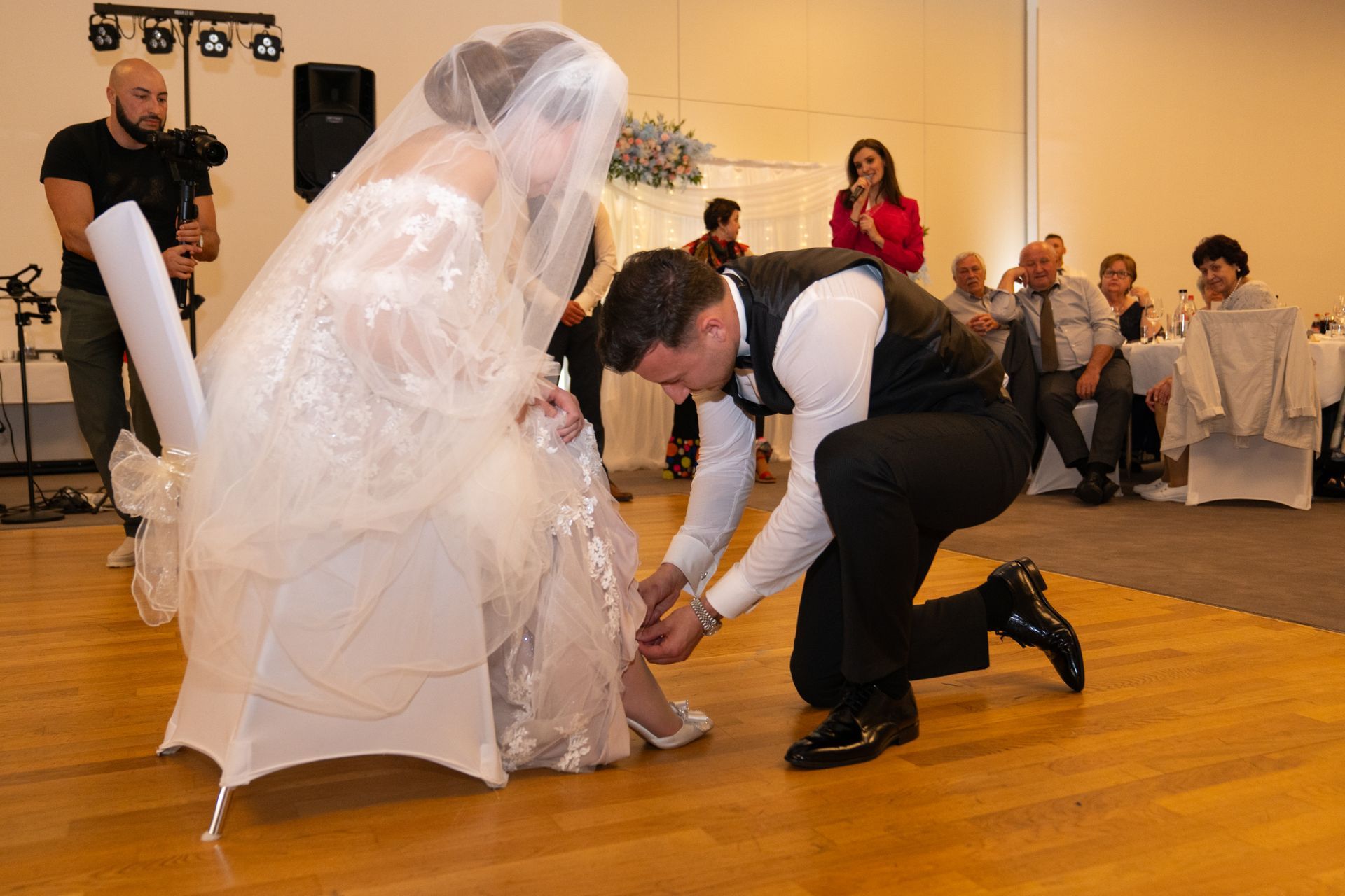 Nach dem ersten Tanz des Brautpaares tanzten auch die Gäste ausgelassen mit. Traditionelle Spiele wie das „Schuheklauen“ der Braut und der anschließende Freikauf sorgten für viel Spaß und Lachen.